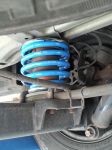 Sur ce modèle, doté de combinés amortisseurs sur la suspension avant dans sa configuration d'origine, on vient ajouté autour de celui-ci un ressort additionnel . Il garantis le retour du véhicule à sa garde au sol d'origine. Le débattement augmente donc à nouveau, ce qui améliore la stabilité et dans une certaine mesure, le confort.