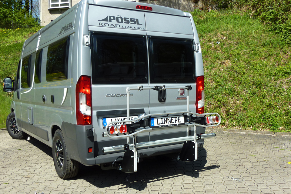 | Pour le portage, les fourgons ont la contrainte des portes situées à l'arrière ; leur structure métallique est trop fine et leurs charnières trop fragiles pour supporter un porte charge. Quant à l'installation d'un support fixe sur l'extension, cela condamne l'accès au hayon. Linnepe a développé une solution pour un transport sécurisé et fonctionnel : le système de portage s'éloigne du véhicule pour laisser l'accès à l'arrière du fourgon. | Afin que votre véhicule soit aussi maniable et compact que possible, tout en vous permettant le transport de vélos, Linnepe à mis au point un système de porte vélo escamotable qui se replie une fois les vélo retirés. Il suffit de déverrouillé le support, de le plié, puis verrouillé à nouveau ... et c'est fait ! Ce système permet de transporter jusqu'à deux vélos classiques ou électriques. |